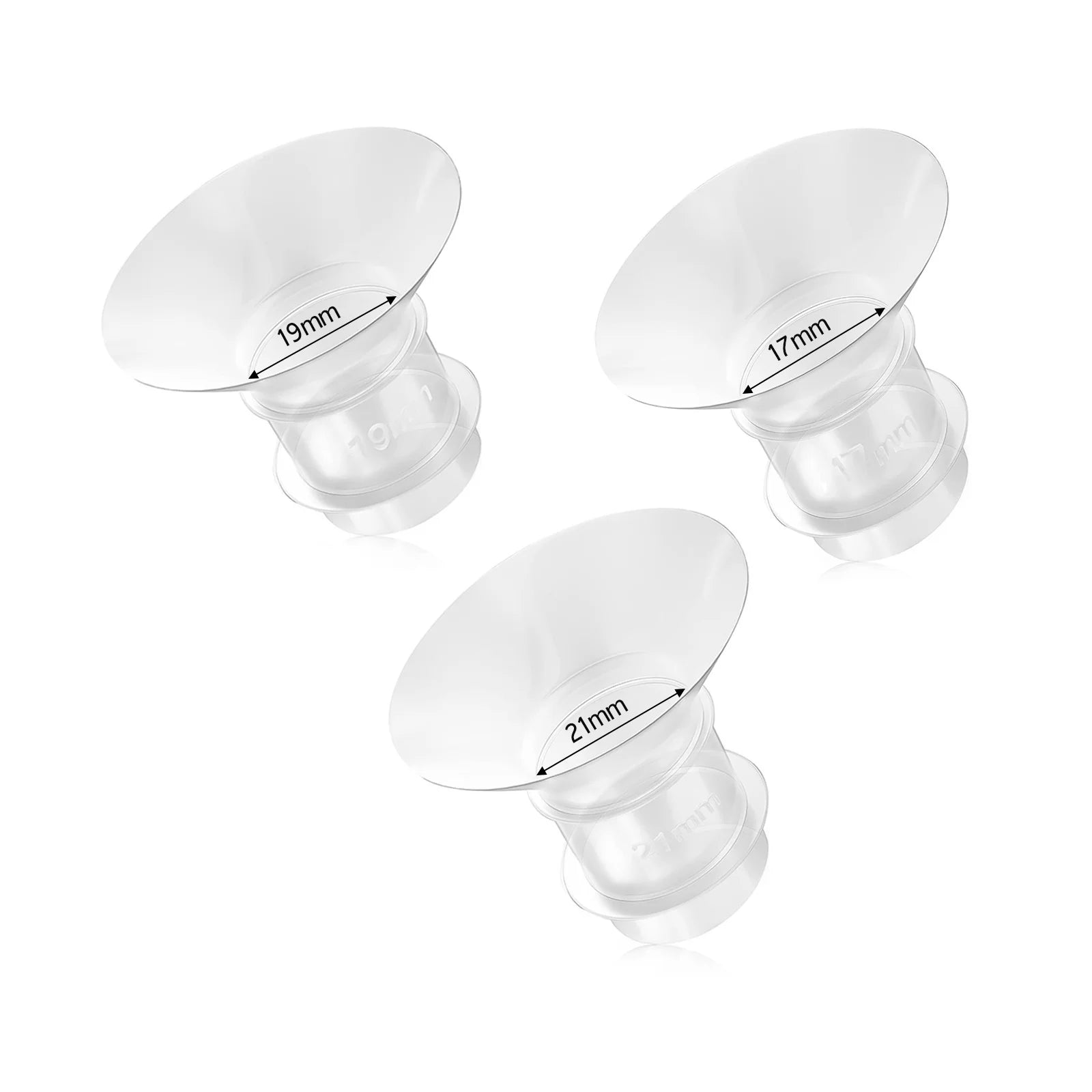3 sizes of flange inserts suitable for different breast pumps: 17mm, 19mm, and 21mm, ensuring that every mother has fitted breast pump.