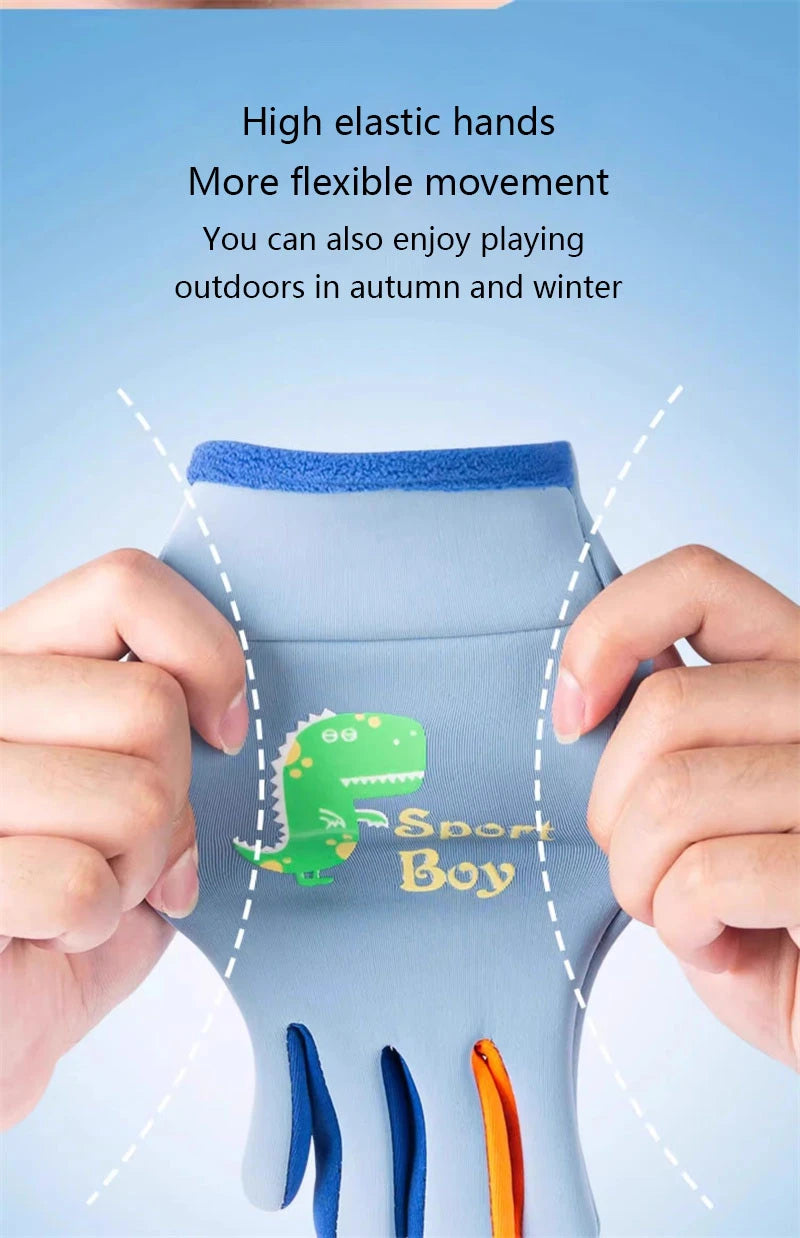 Winter Children's Gloves Cartoon Dinosaur Fluorescence Cycling Kids Warm Sports Skiing Windproof Waterproof Boys Girls Gloves