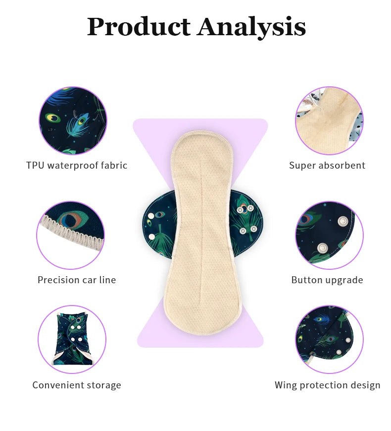 Lot de 2 serviettes hygiéniques lavables en coton pour femme, réutilisables, pour flux abondant, pour la nuit et la journée