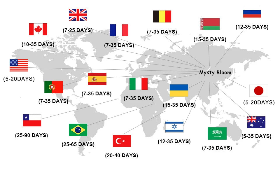 1. Temps de préparation : nous avons besoin de 3 à 10 jours ouvrables pour préparer votre commande en raison de nos nombreuses commandes quotidiennes.