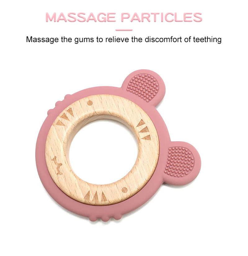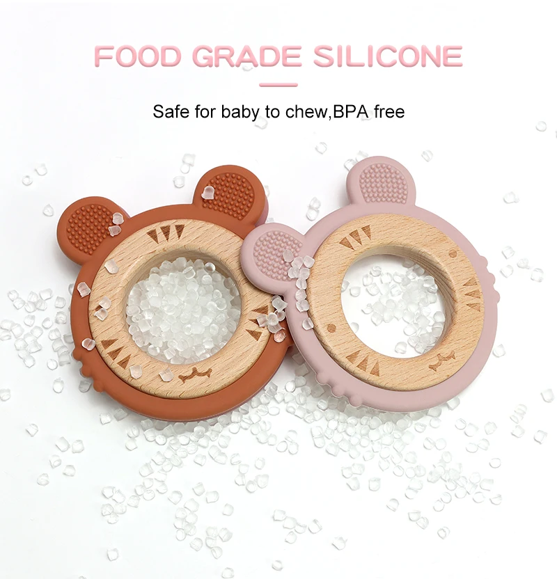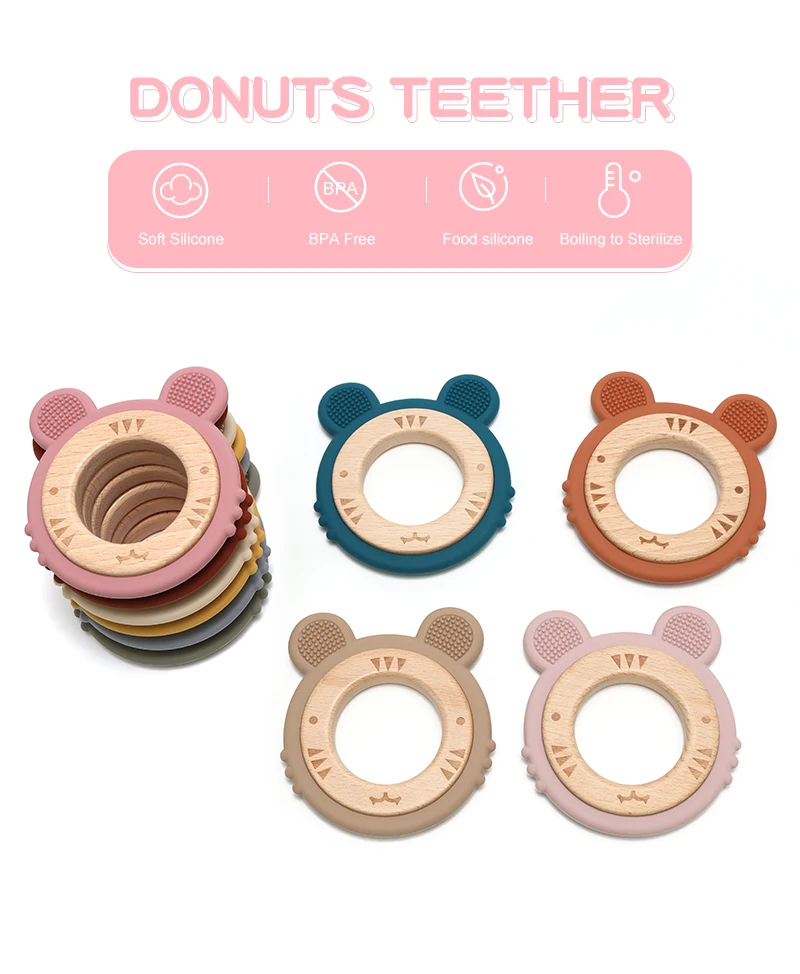 1 anneau de dentition en silicone pour bébé, sans BPA, mignon, dessin animé, pendentif tigre, jouet de dentition, anneau en bois, accessoires à mâcher, jouets pour bébé