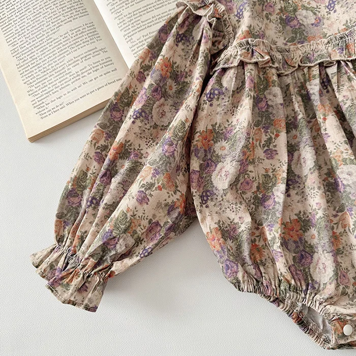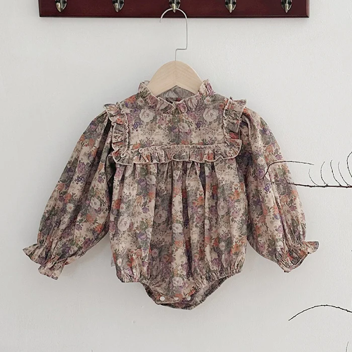 Barboteuse à manches longues pour bébé fille, nouvelle collection automne 2024, en coton imprimé, combinaison pour bébé fille de 0 à 24 mois
