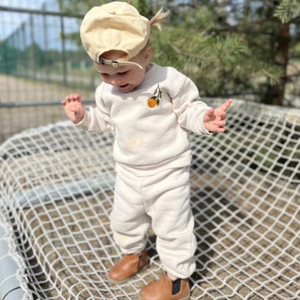 Ensemble de vêtements d'hiver pour bébé garçon et fille, sweat-shirt et pantalon en polaire épaisse brodée de fleurs, survêtement chaud pour enfant, tenue unisexe pour tout-petits, 2025