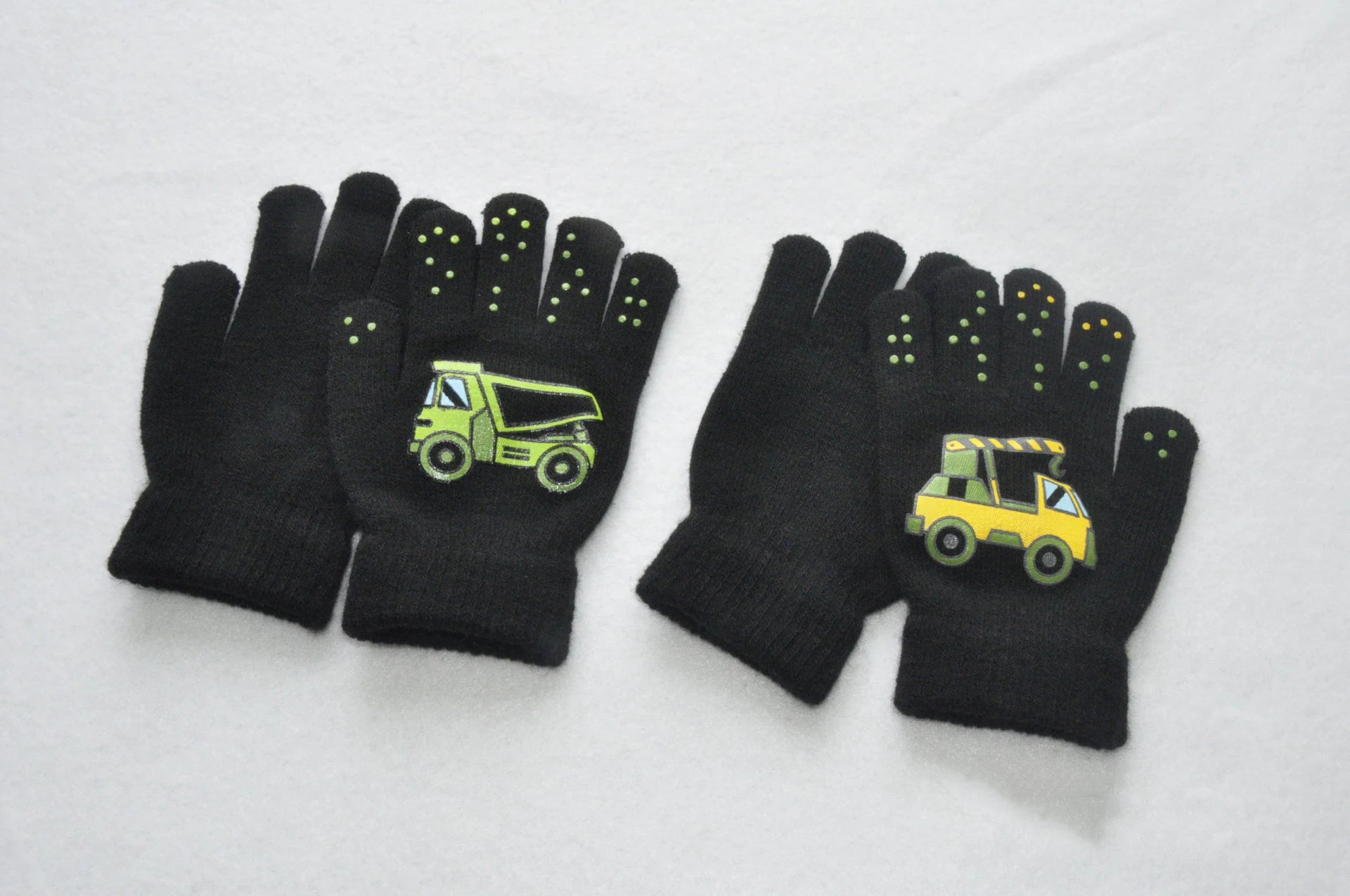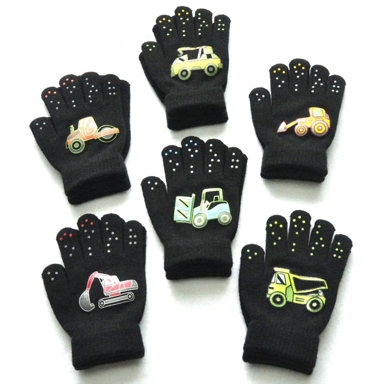 5-11Y Children Cartoon Vehicle Plush Warm Gloves For Boys Girls Student Winter Knitted Mittens Outdoor Cycling Skiing Gloves New
