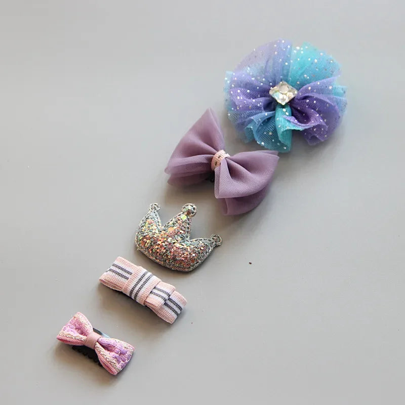 5Pcs/Set Baby Hair Clips Cute Girl Bows Crown Hair Clips Kids Child Baby Hairpins Barrettes Haarspeldjes Baby Hair Accessories