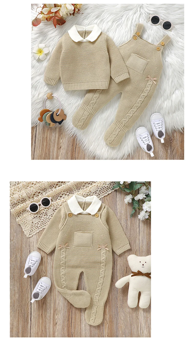Ensemble de vêtements d'automne pour bébé, pull en tricot à manches longues + barboteuse sans manches pour nouveau-né + combinaison pour les pieds (0-9 mois)