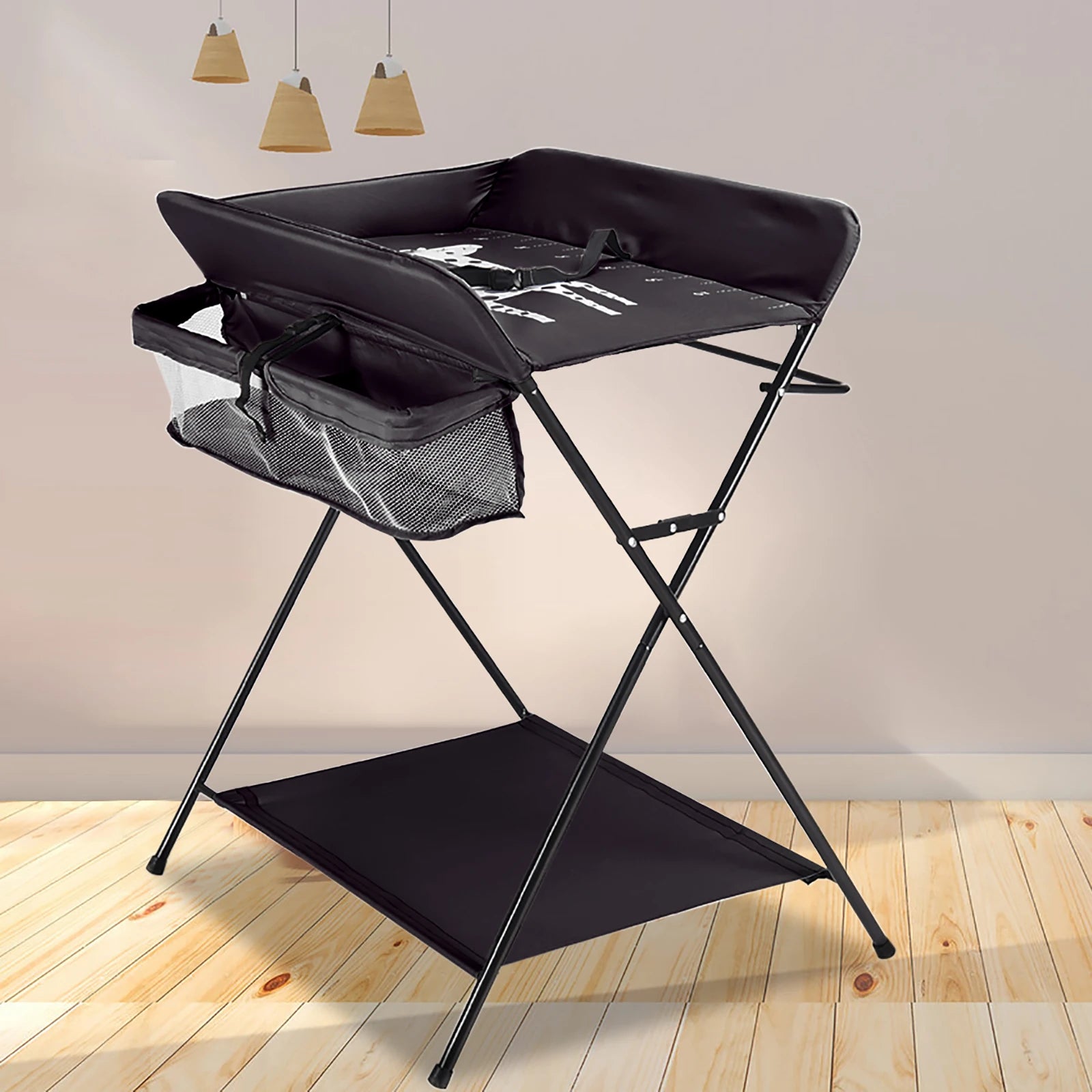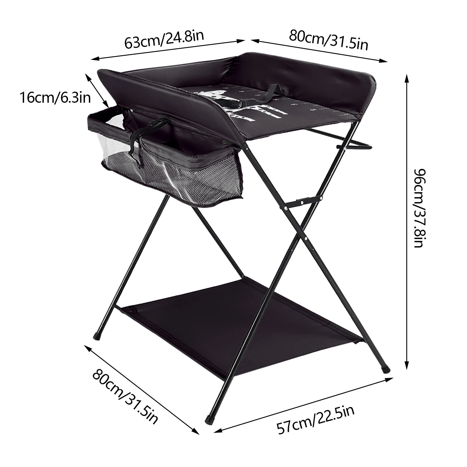 Baby Changing Table Foldable Changing Table with Storage Shelves Cushion with Height Ladder Large Changing Table 80 x 63cm