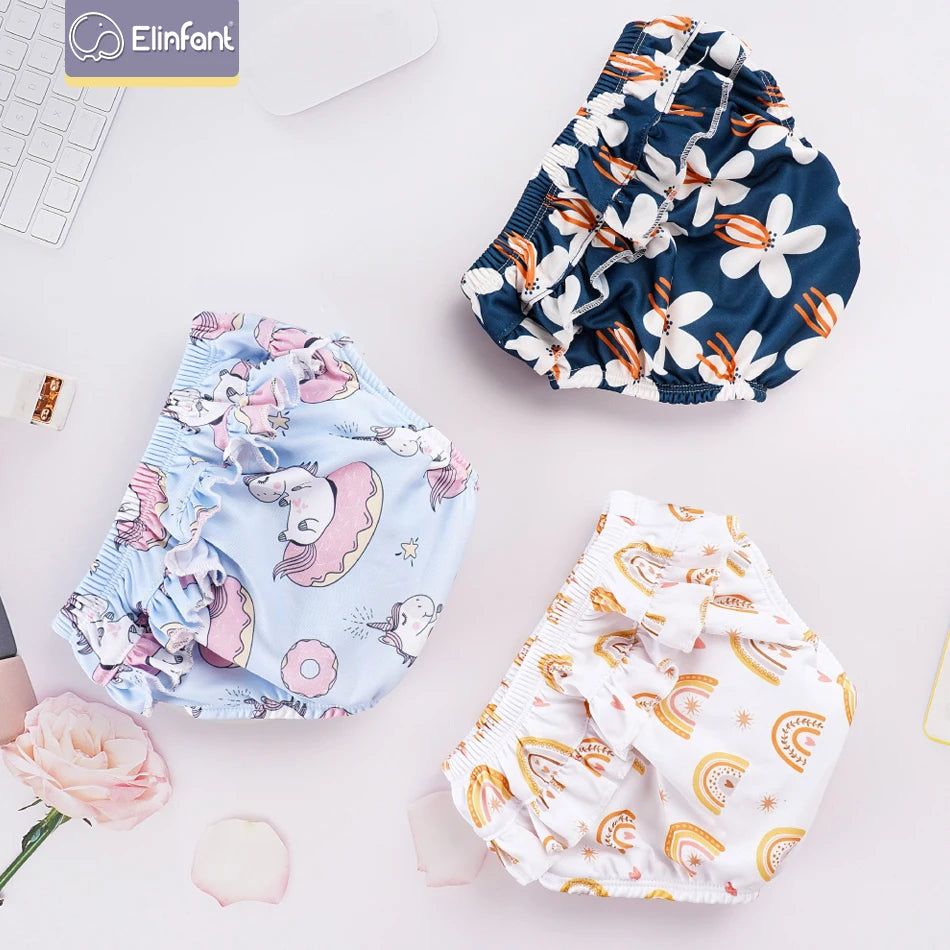 Elinfant 3 Size Flower Side Comfortable Baby Swim Diapers Fashion Print Reusable Washable Swimming Diaper Pool Pants