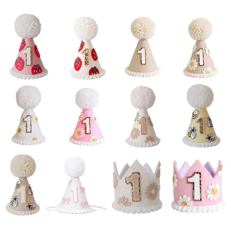 Felt Celebration Party Caps Birthday Hat for One Year Birth Celebration