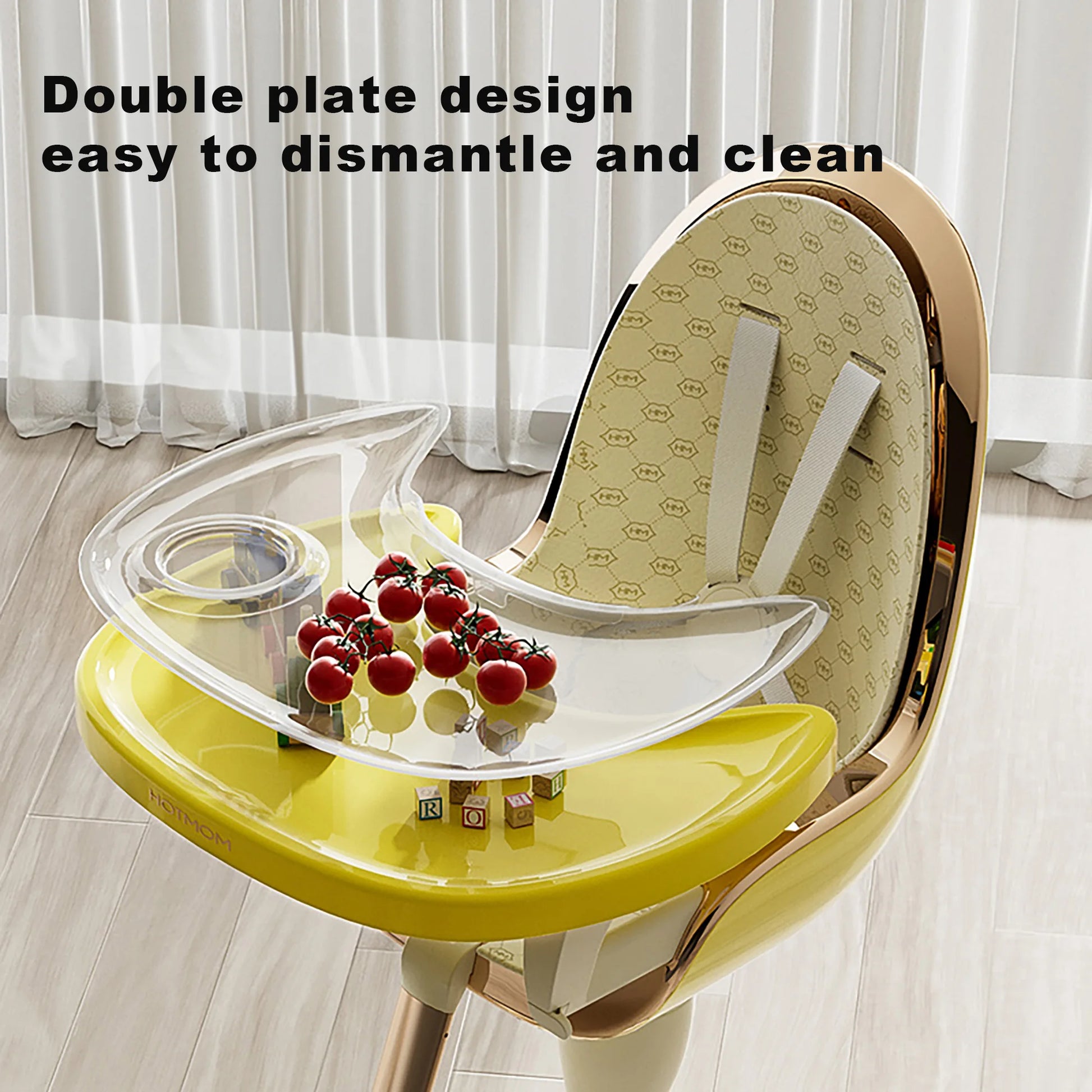 Hot Mom Baby High Chair With Adjustable Seat Height, Eating Chair with Foot Rest,Removable Tray,PU Leather Cushion