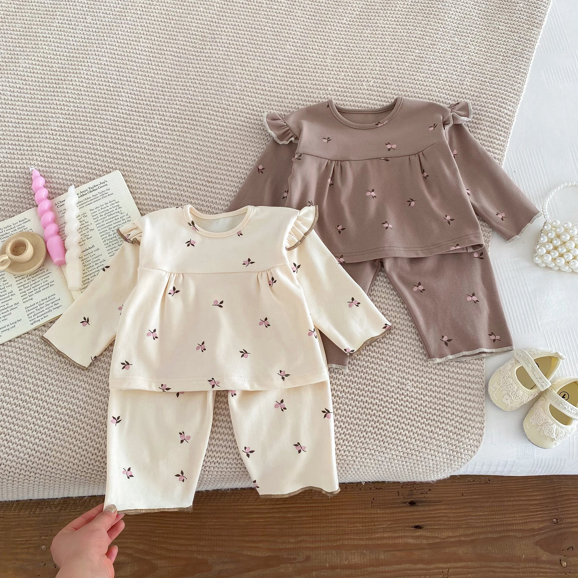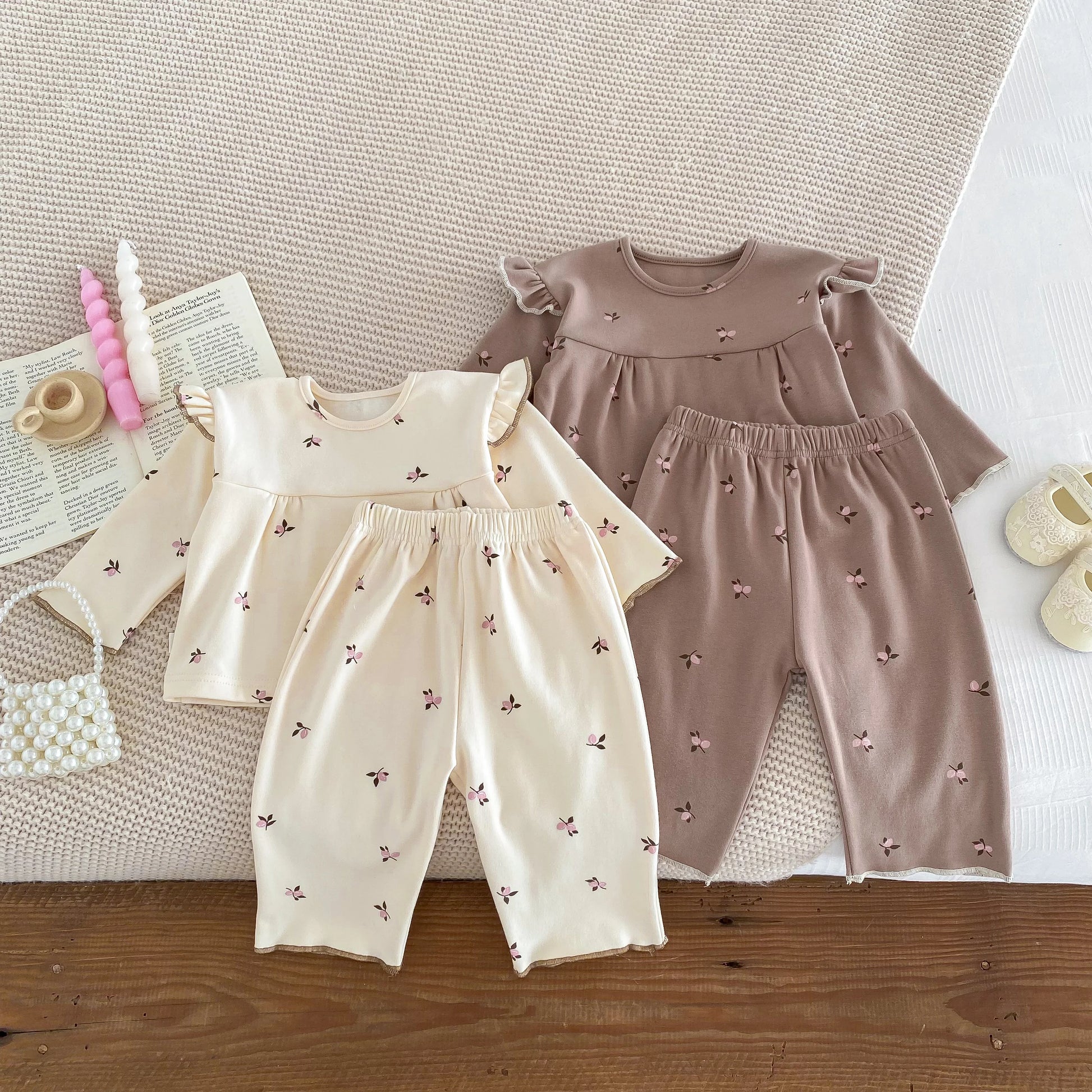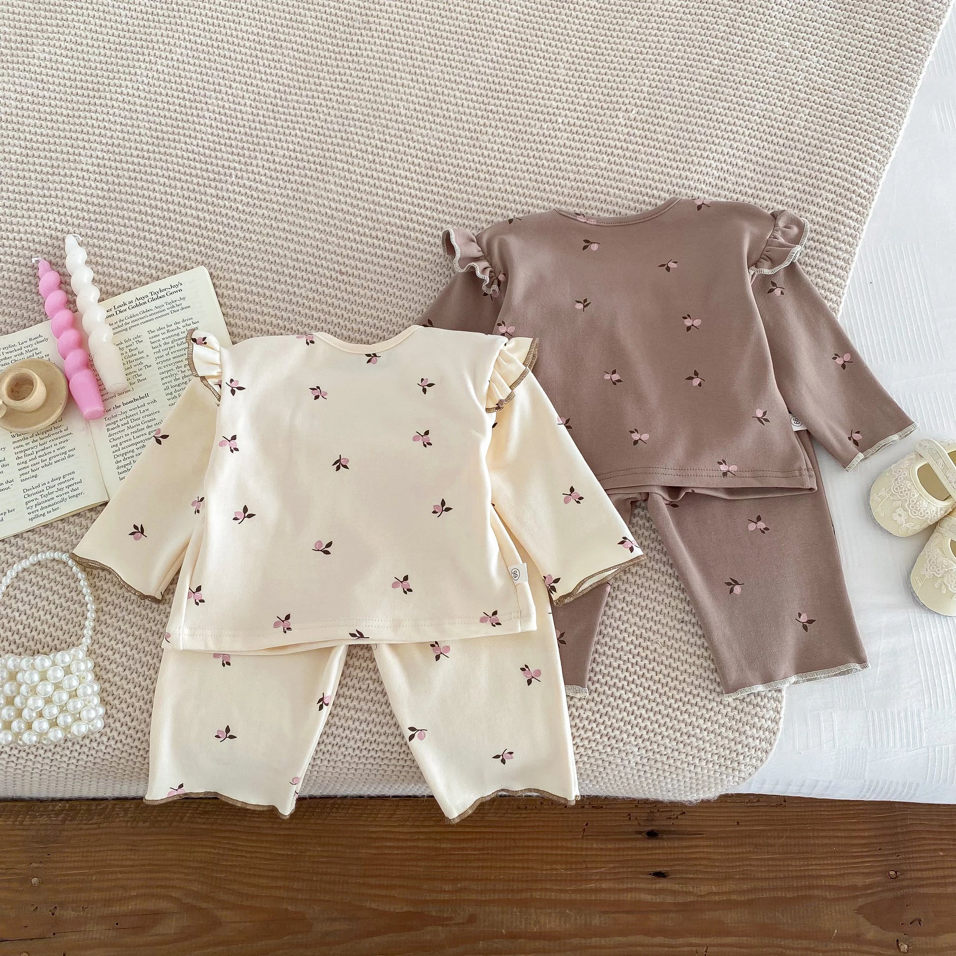 IG Fashion Vêtements pour nouveau-nés Pyjama pour bébé Garçon Fille Imprimé Cerise Manches Longues Chemise + Pantalon Vêtements de Nuit Ensemble Deux Pièces 0-2 ans
