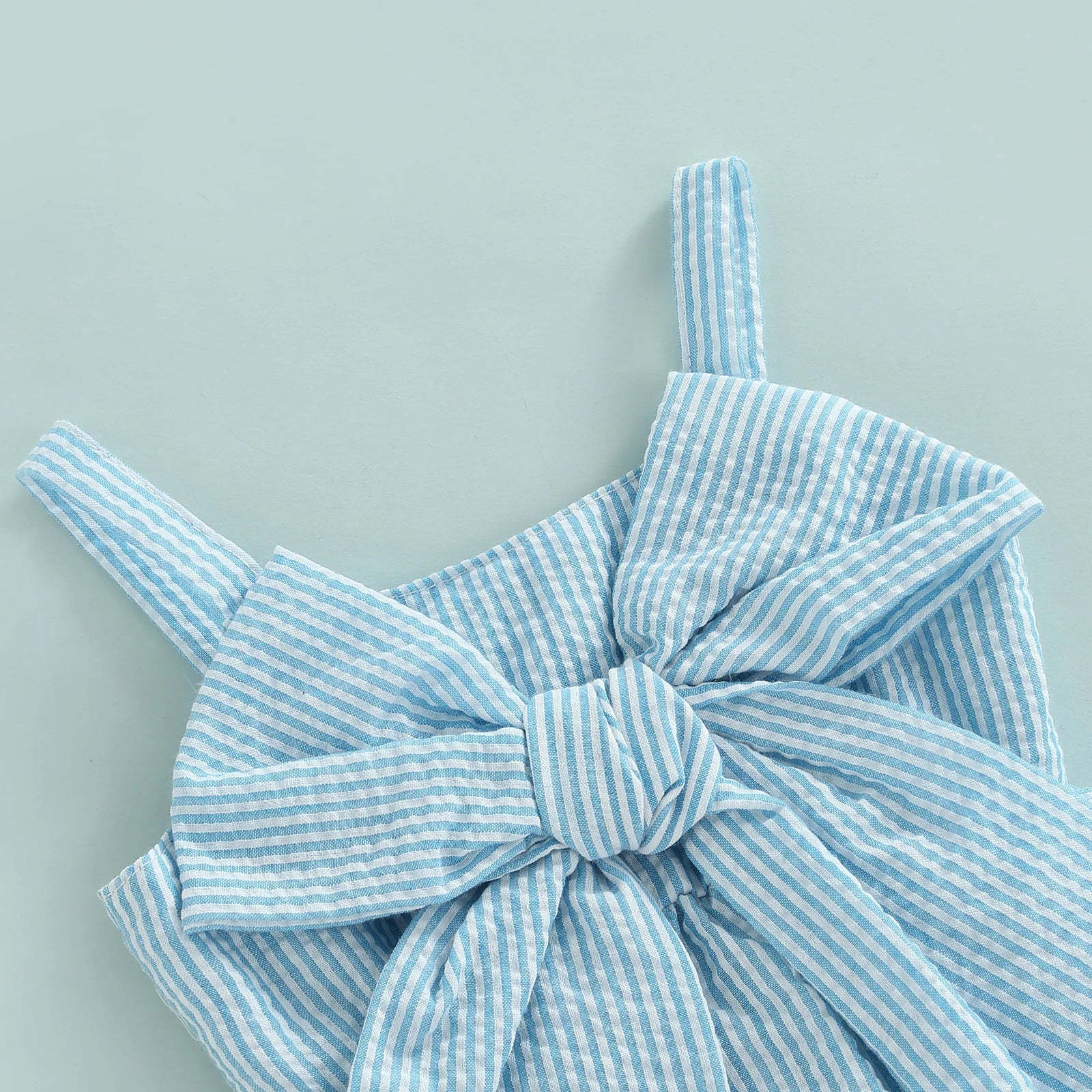 Ensemble short bébé à rayures, haut sans manches à gros nœud et short extensible taille haute