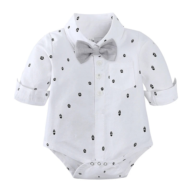● Nom du produit : New Essentials Gentleman Style Bébé Garçons Nœud Papillon Barboteuse Vêtements Formels Ensembles Coton Combinaison + Bretelles Shorts Nouveau-Né Infantile Costume