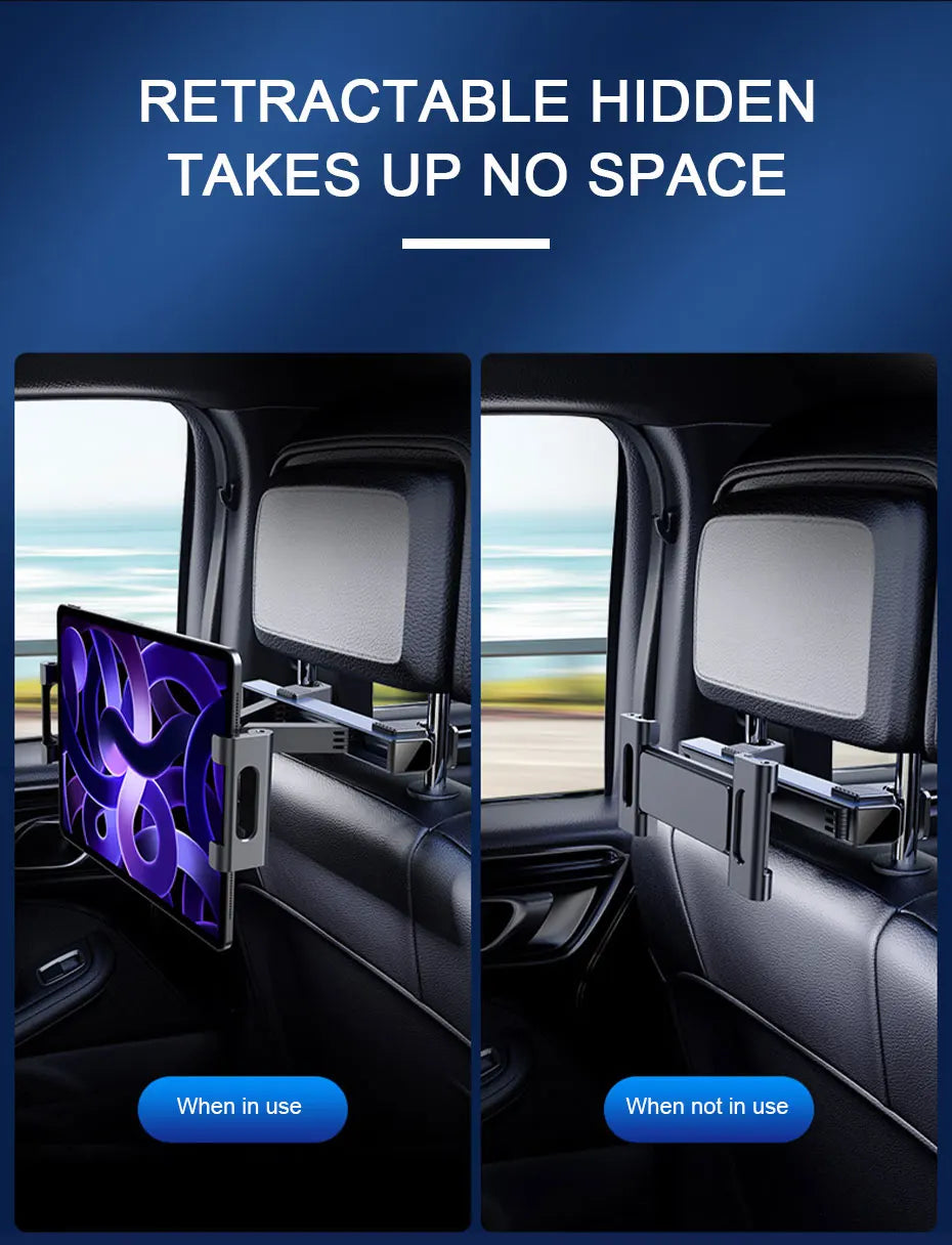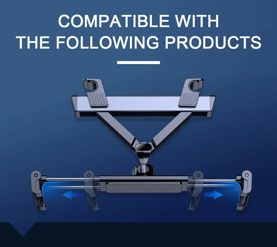 2. 360 Rotatable & Easy Installation - 360 degree rotation allows you to rotate any angle you desired, you only need adjust the expandable leg of backseat headrest mount, so it can be installed immediately.