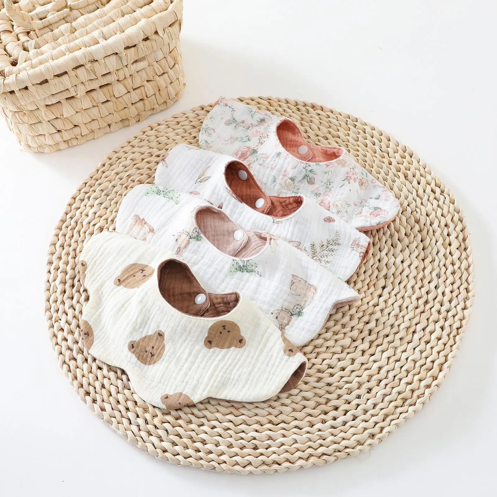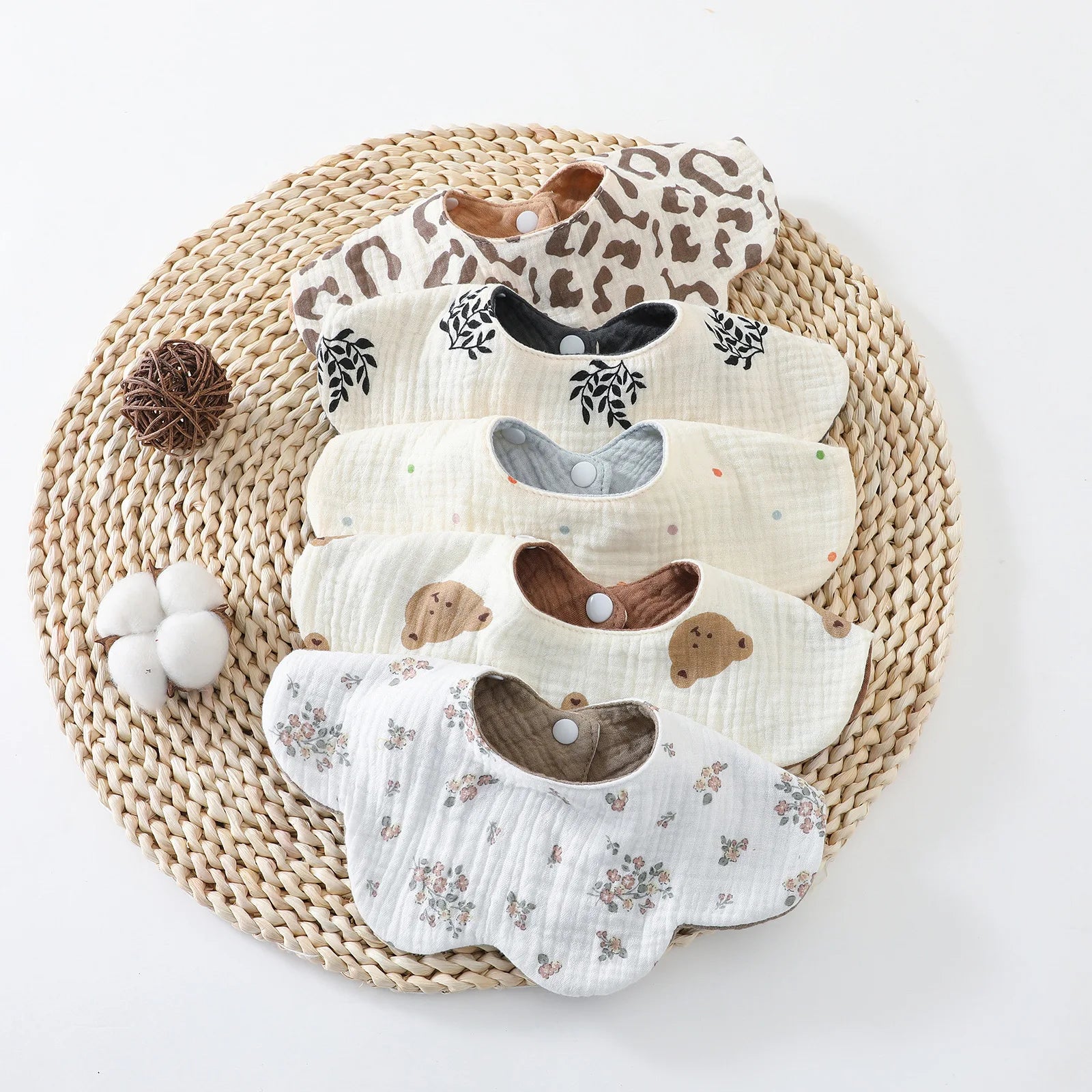 New 6 Layers Cotton Two-sided Usable Baby Feeding Drool Bib Cute Infants Saliva Towel Burp Cloth For Newborn Toddler Kids Bibs