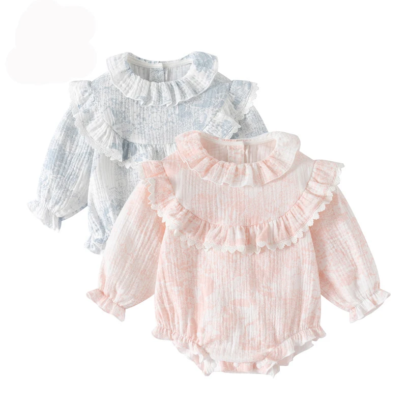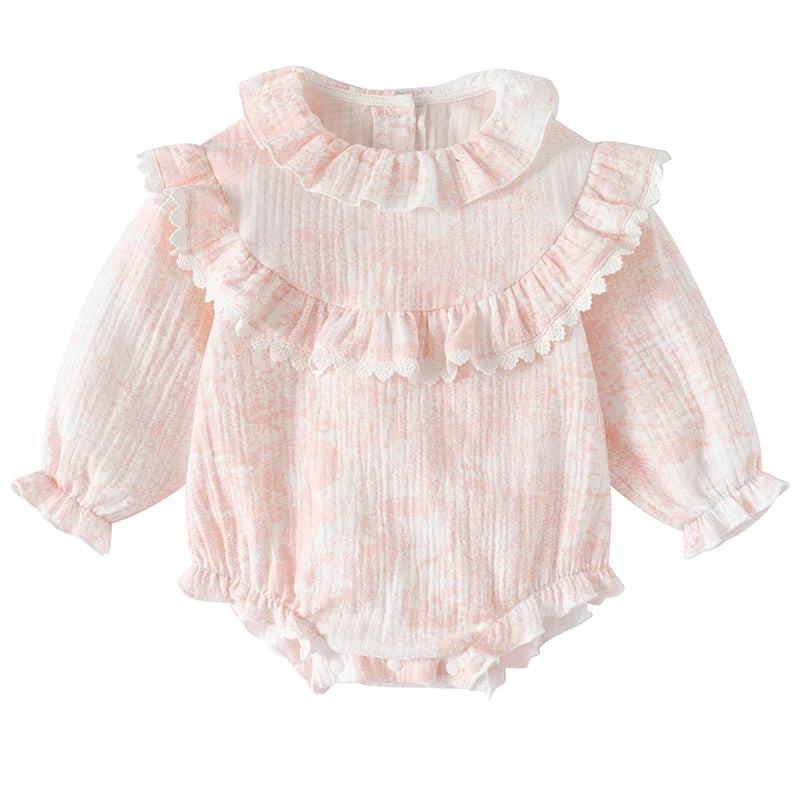 Barboteuse pour bébé fille, barboteuse à volants, col à volants, motif floral, vêtements de princesse pour nouveau-né