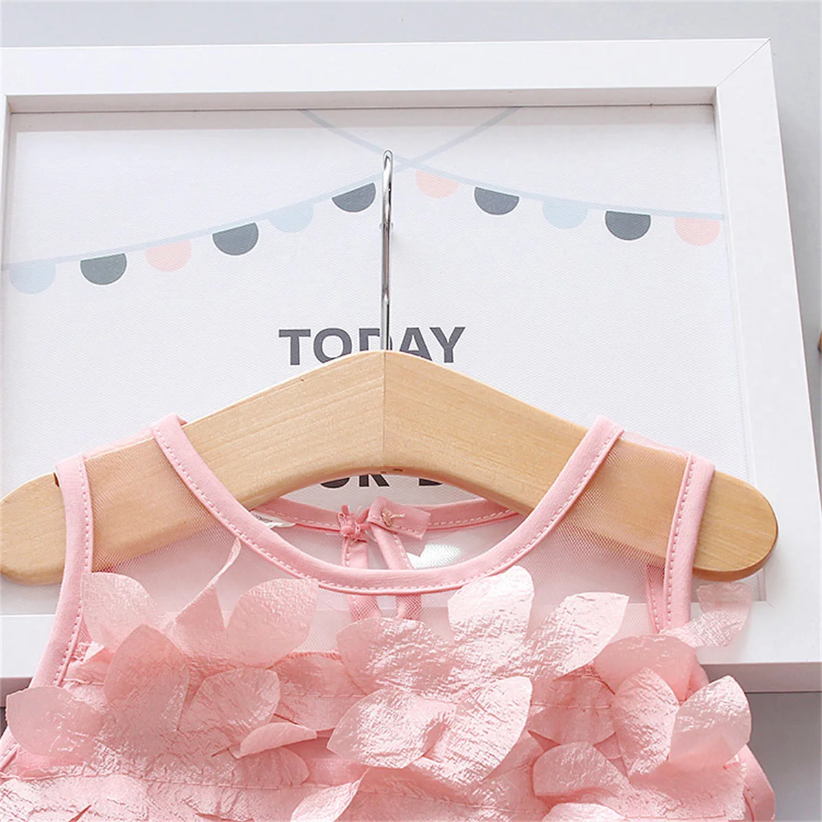 Robe d'été pour fille de 0 à 3 ans, couleur unie, style princesse, en maille, sans manches, longueur genou