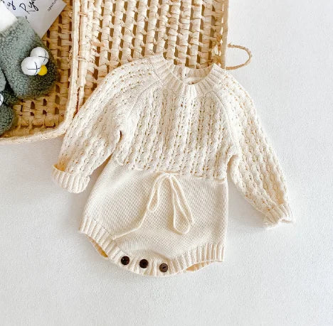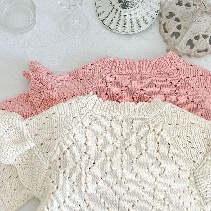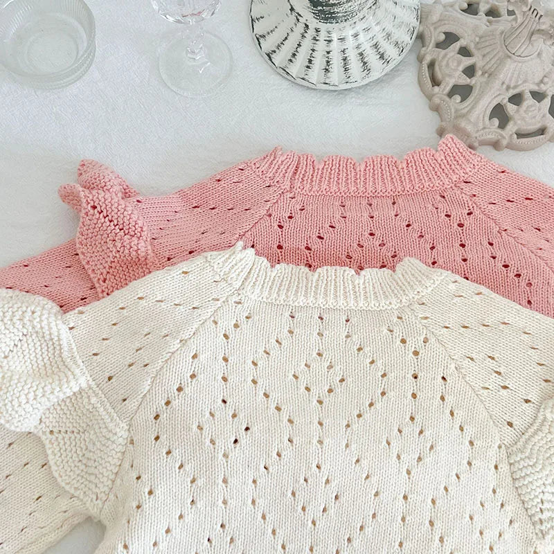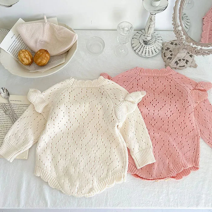 Body tricoté pour nouveau-né fille, couleur unie, ajouré, manches longues, automne, printemps, combinaison tricotée pour bébé fille