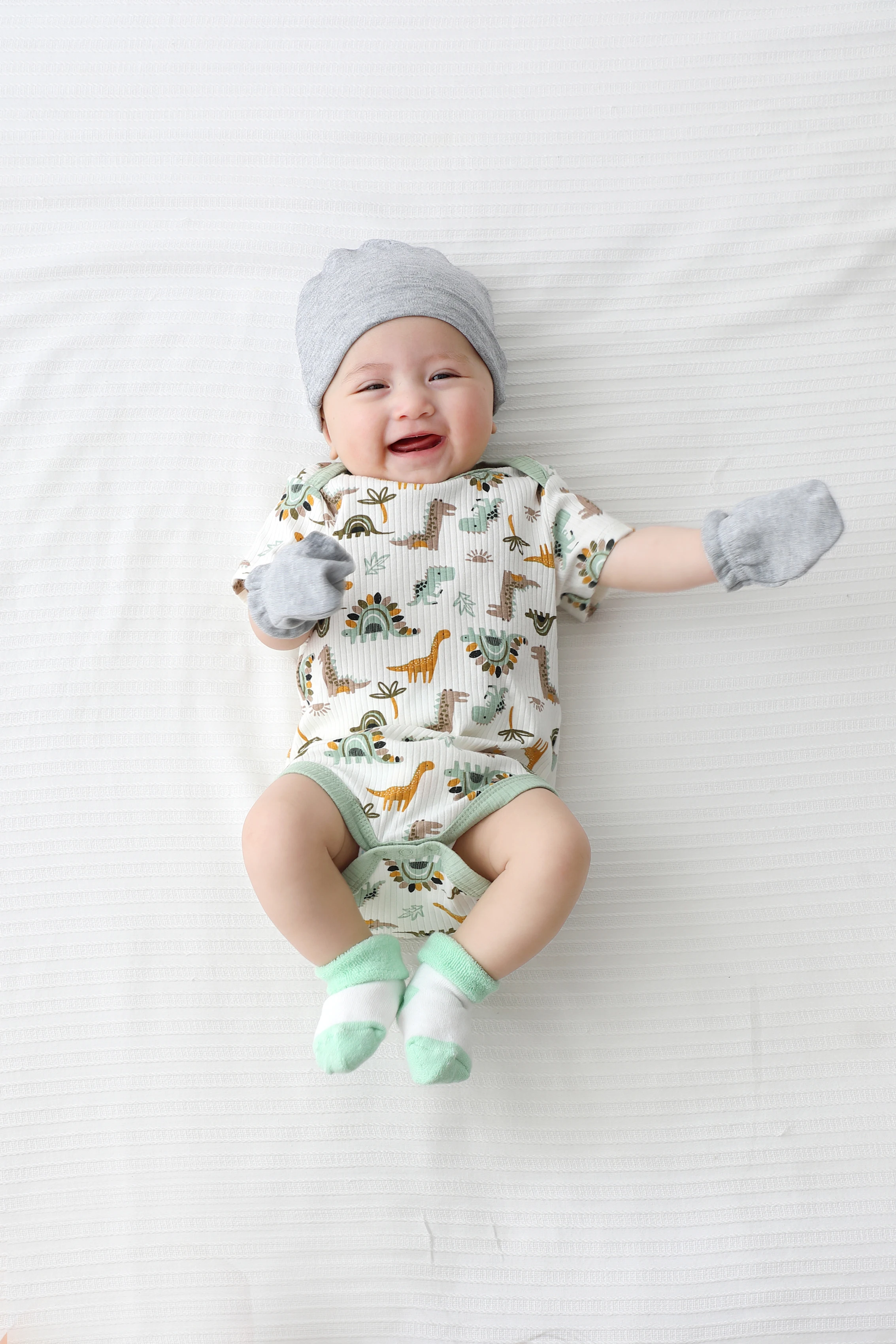 【Pratique à porter】La combinaison à manches courtes est dotée d'un col extensible, tandis que la combinaison à manches longues est dotée d'un bouton au col, pour un confort optimal. Le bas de la combinaison est doté de trois boutons pour faciliter le changement de couche.