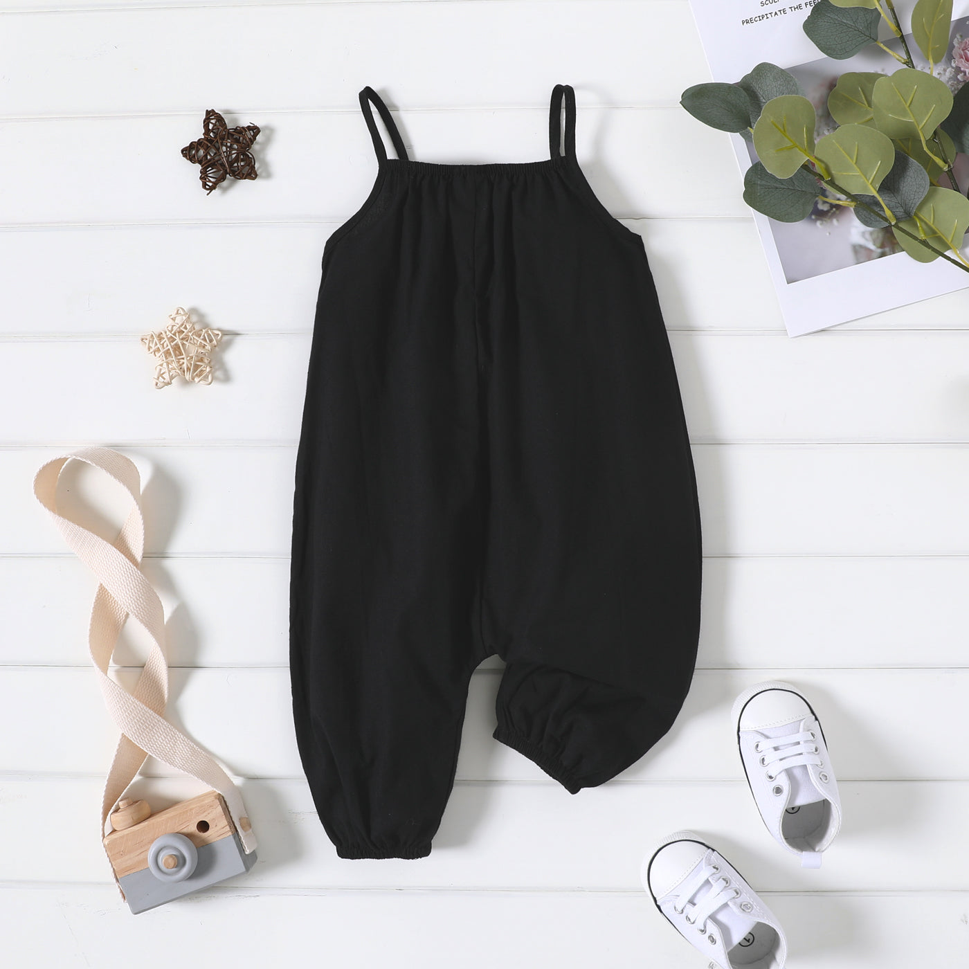PatPat Salopette ample 100 % coton pour bébé fille, couleur unie, sans manches, bretelles spaghetti, sarouel, douce et confortable