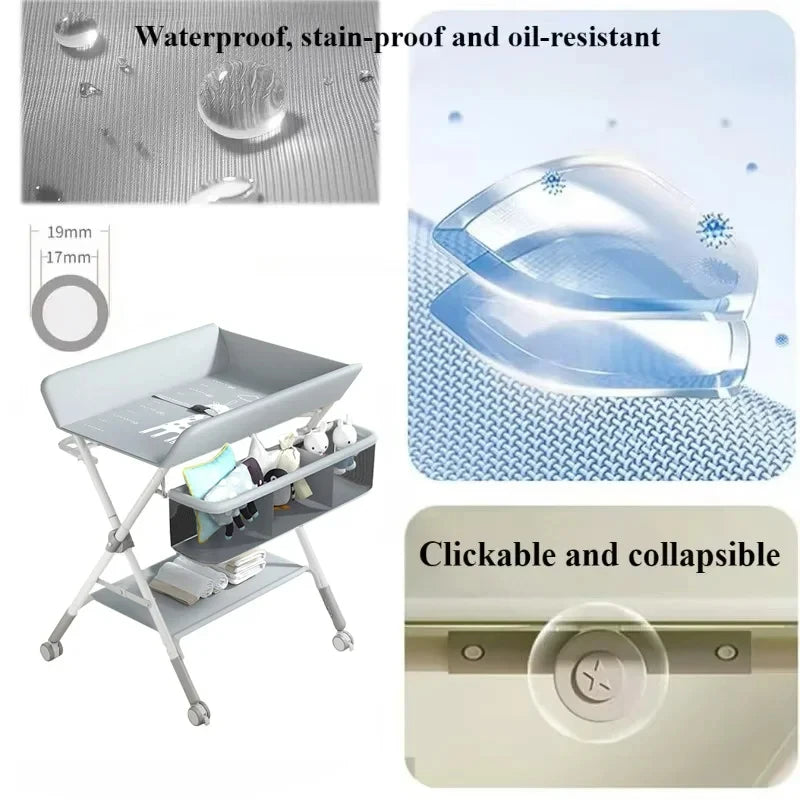 Portable Baby Changing Table for Nursery Height Adjustable Foldable Diaper Table with Swivel Wheels Drying Rack Large Storage