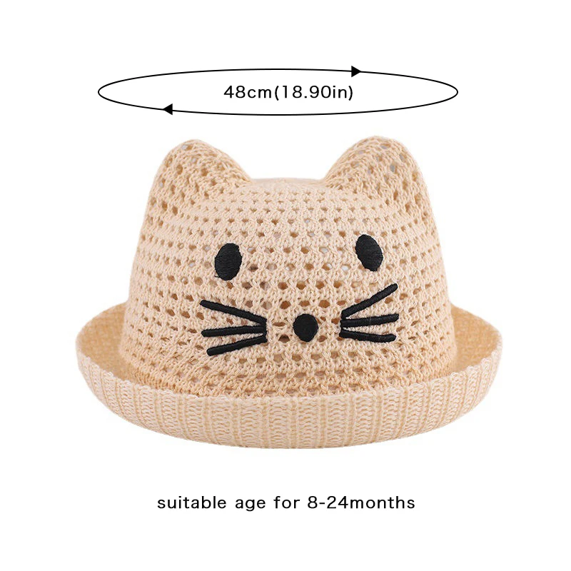 Summer Baby Straw Hat Cute Cat Ear Infant Toddler Mesh Breathable Bucket Hat Outdoor Beach Boy Girl Panama Sun Cap