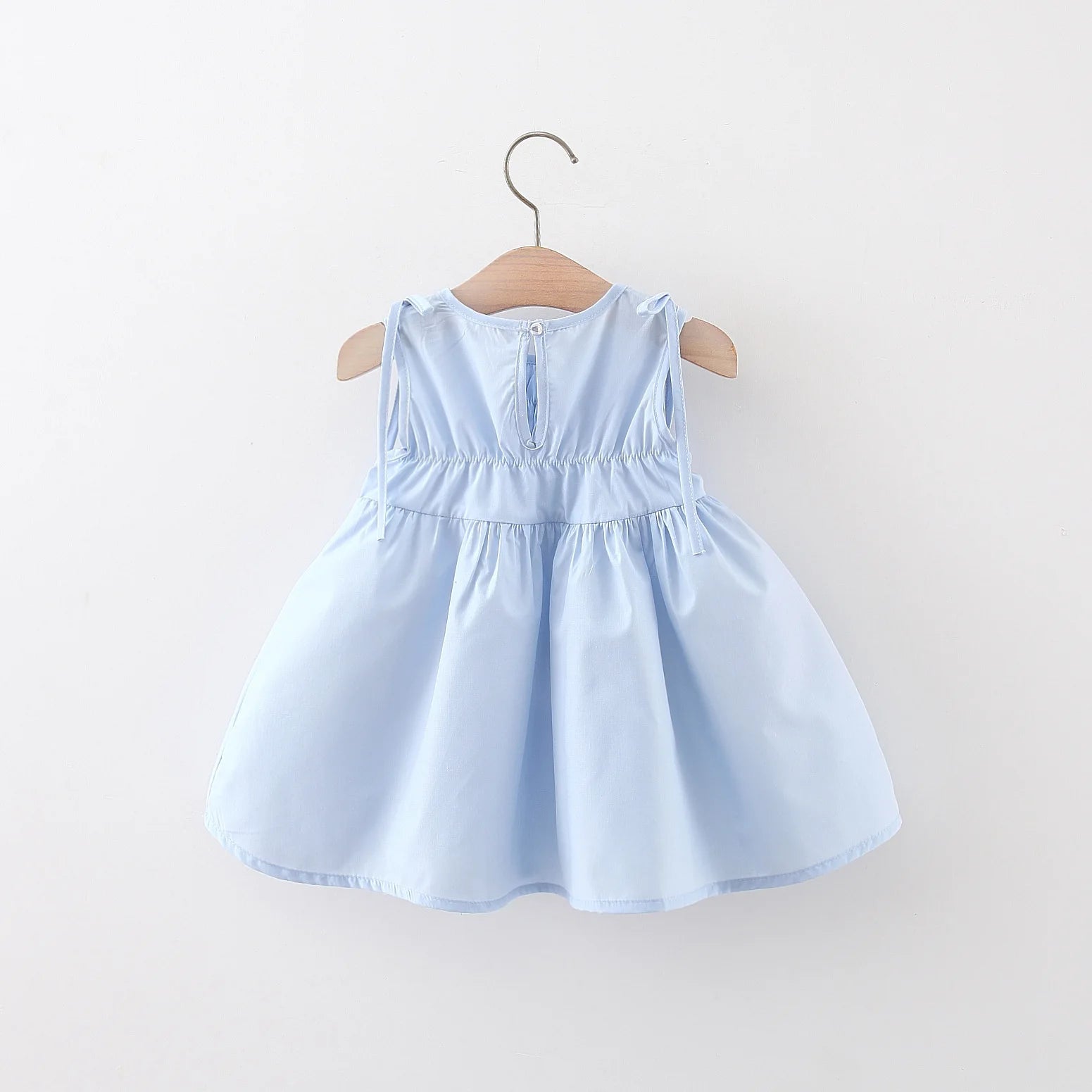 Robe d'été pour bébé fille, tenue de plage, style coréen, simple, bleue, sans manches, pour enfant, paquet gratuit (9 mois à 3 ans)