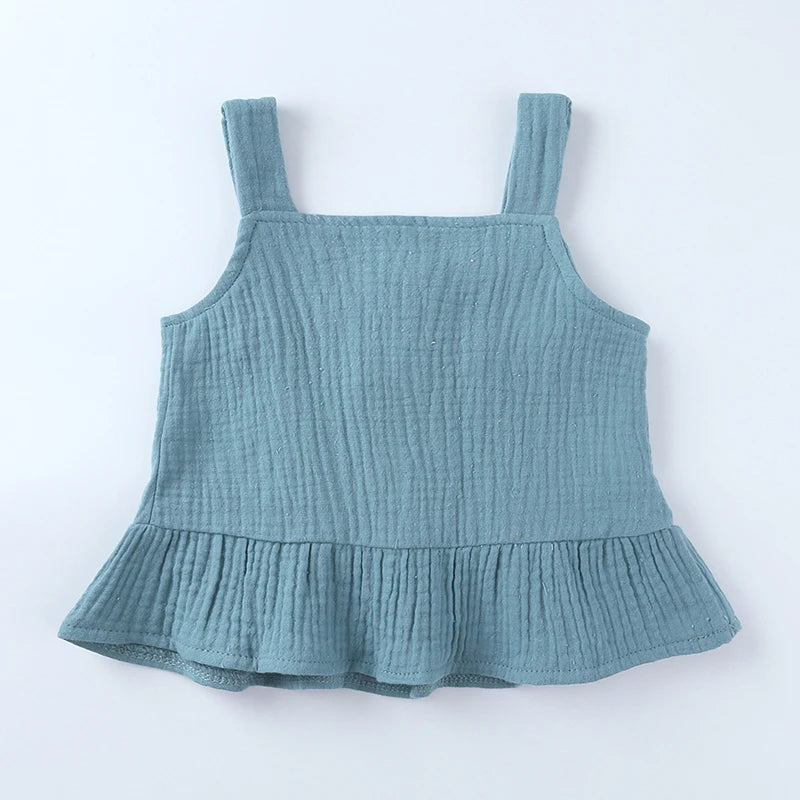Ensemble de vêtements d'été pour nouveau-né fille, haut sans manches à volants en coton uni, pantalon court, 2 pièces