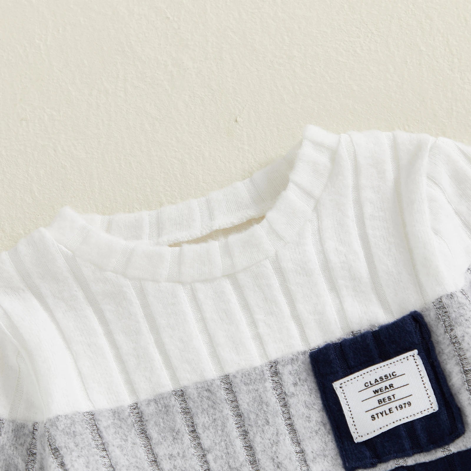 Ensemble 2 pièces pour garçon, pantalon à manches longues, col rond, patchwork, couleur unieTaille (cm)