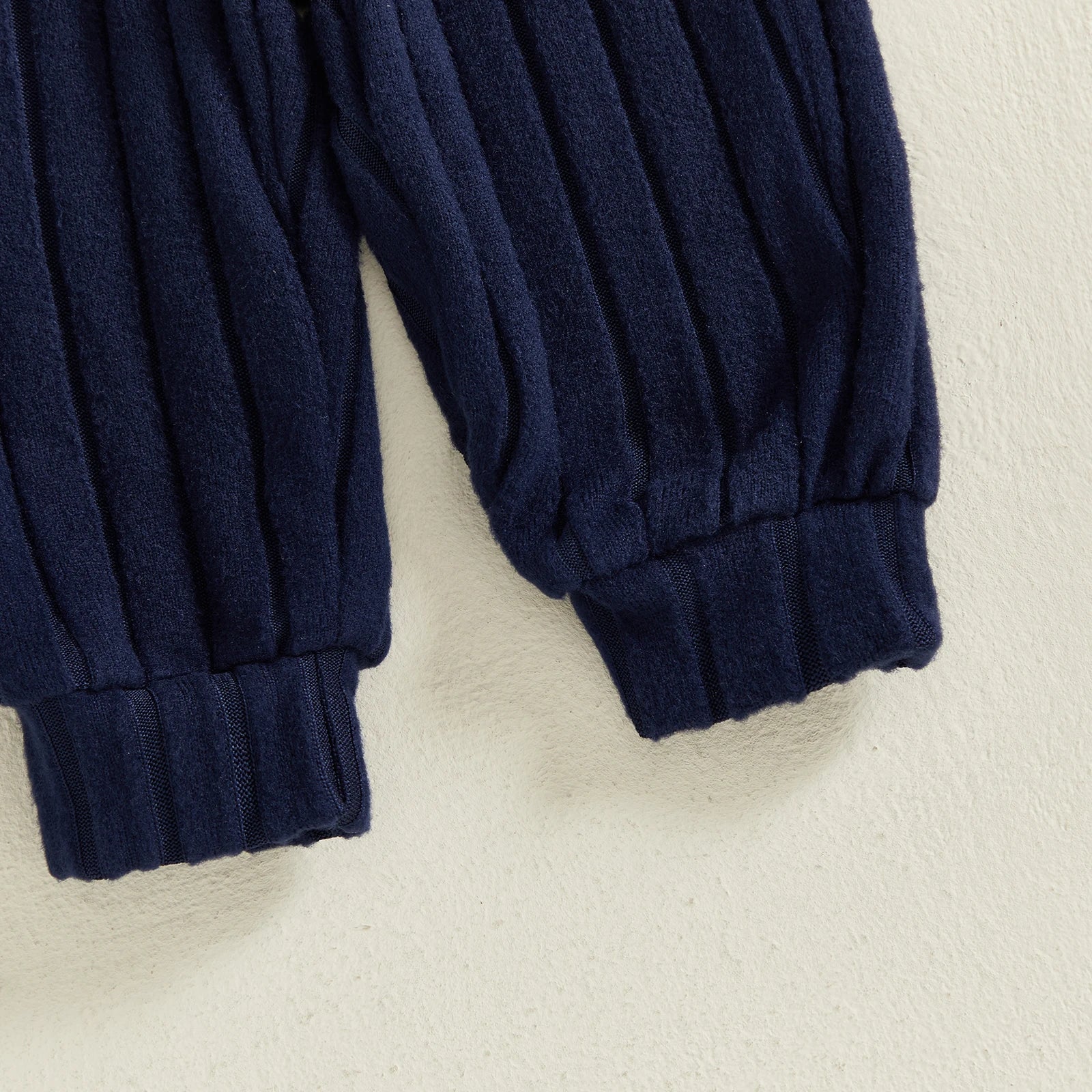 VISgogo Ensemble de vêtements 2 pièces pour garçons de 0 à 3 ans, pull à manches longues et col rond, couleur unie, pantalon